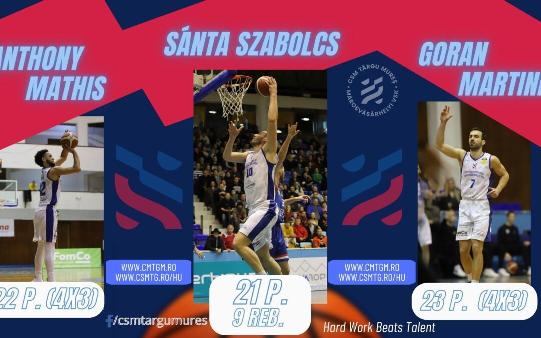 Victorie mare în faţa liderului cu un trio formidabil! Martinic 23, Mathis 22 şi Sánta 21, ultimul fiind cel mai eficient jucător de pe teren, cu 32 de unităţi.