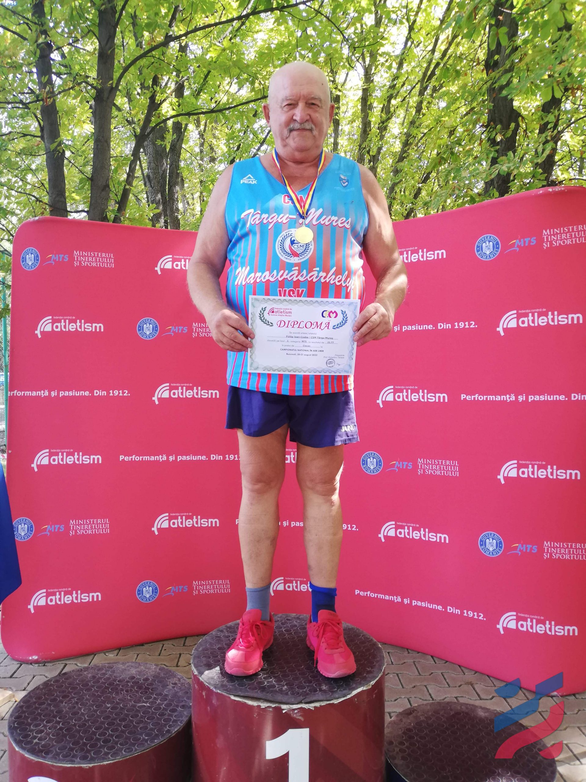 A „legfiatalabb” atlétánk, Fülöp János Csaba (fotó jobbra) a 75 év fölöttiek (!) korosztályában három aranyérmet is szerzett: nehéz kalapács-, illetve kalapácsvetésben és diszkoszvetésben sem talált legyőzőre, de súlylökésben is épp, hogy leszorult az első helyről, második helyen zárt.